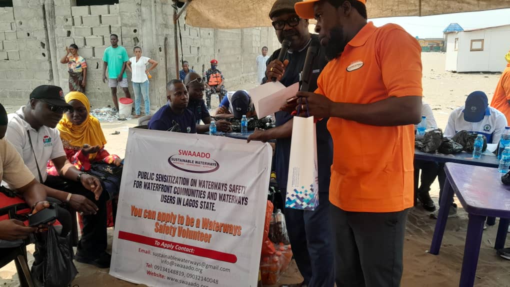 LAGOS — On a misty Tuesday morning along the Onisiwo Island waterfront in Lagos State, life jacket-clad community safety officers fan out among the wooden jetties, speaking to fishermen, market women, and boat operators in Yoruba and pidgin English. Behind them, a banner bears a simple but urgent message: “Saving Lives on Our Waterways.” This is SWAAADO at work.