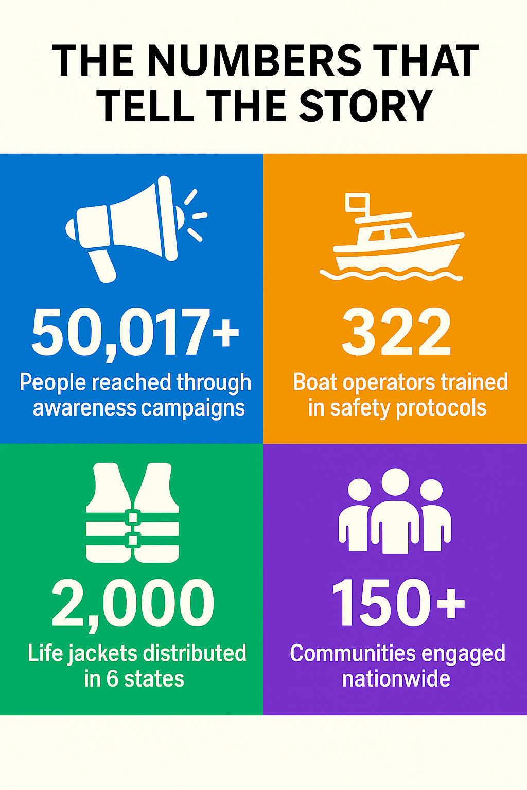 The most immediate and humanly significant impact would be a verifiable reduction in preventable deaths and injuries on Nigeria’s waterways. Evidence from comparable interventions in Bangladesh, Cambodia, and the Philippines — countries with similarly dense inland waterway populations — suggests that sustained community safety education combined with life jacket distribution and regulatory enforcement can reduce accident fatalities by 40 to 60 percent within five years. Applied to Nigeria’s context, this would translate to hundreds of lives saved annually. Over a decade, the cumulative figure would be in the thousands. These are not statistics. They are mothers, children, traders, and fishermen who come home.